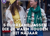 Last but definitely not least: de faux fur jacket van Mazine, gemaakt van gerecycleerd polyester met GRS-certificaat. De bruine kleur maakt hem makkelijk combineerbaar en de textuur geeft elke outfit een knus gevoel.