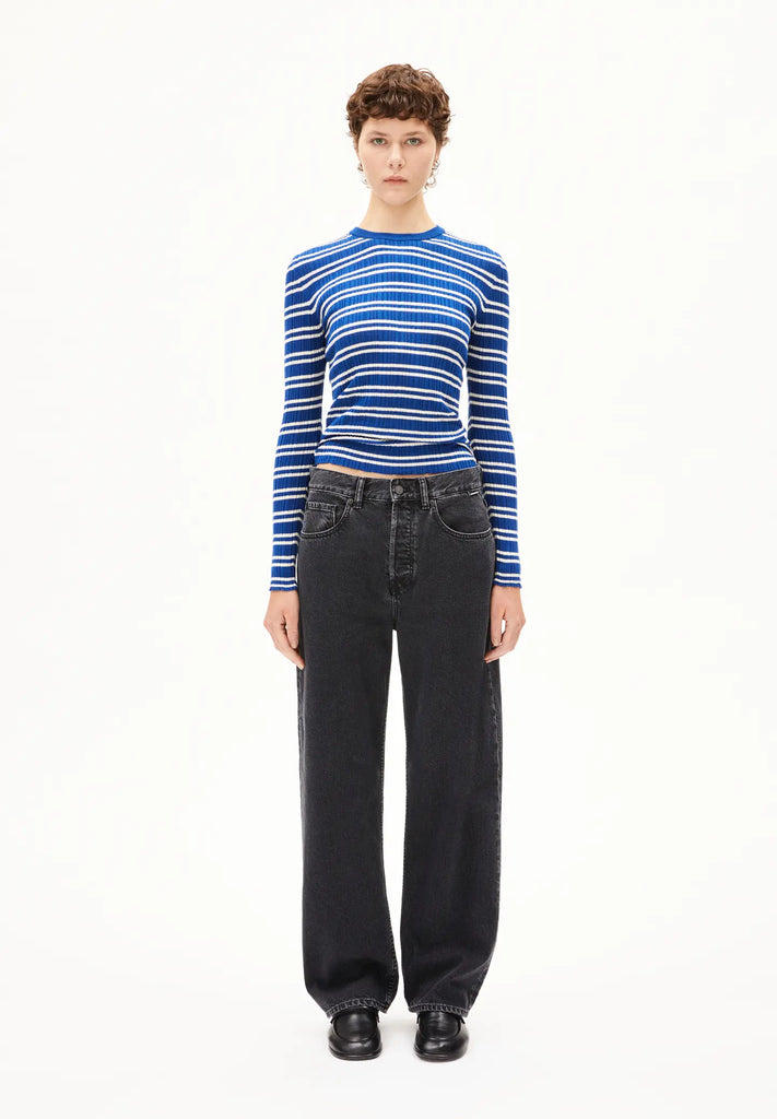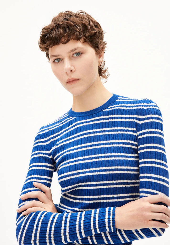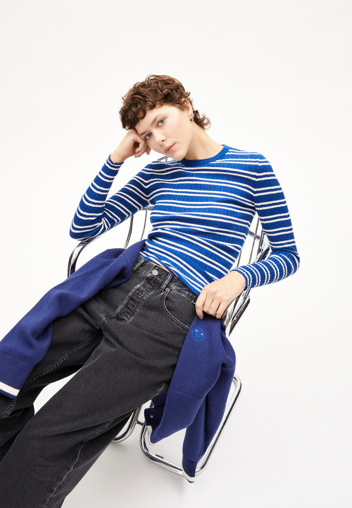 ARMEDANGELS Alaania chiffron stripes longsleeve lapis blue oatmilk women