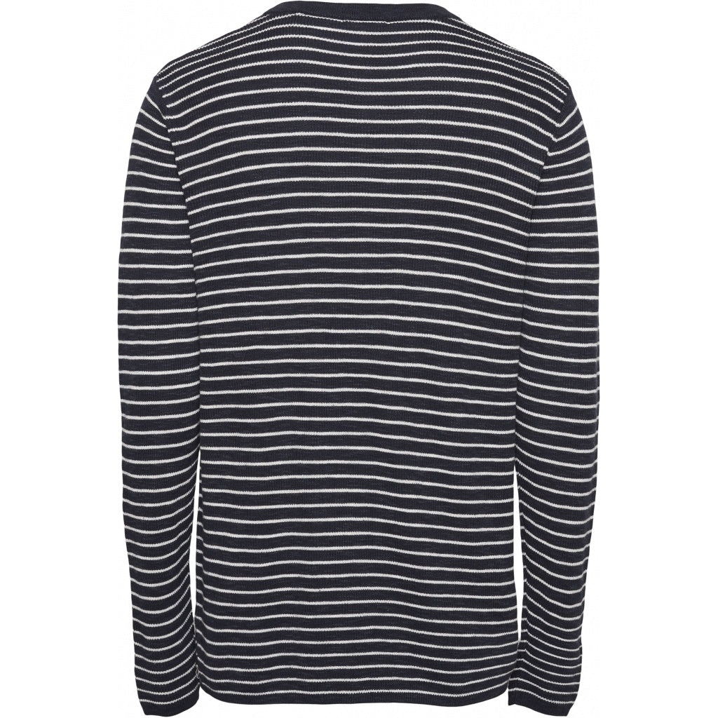Fine structured knit in ribbing, with stripped color effect. Perfect to pair with chinos for a comfortable and stylish look.