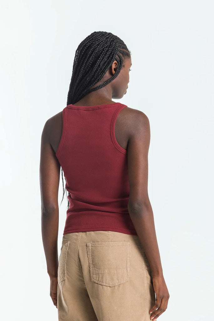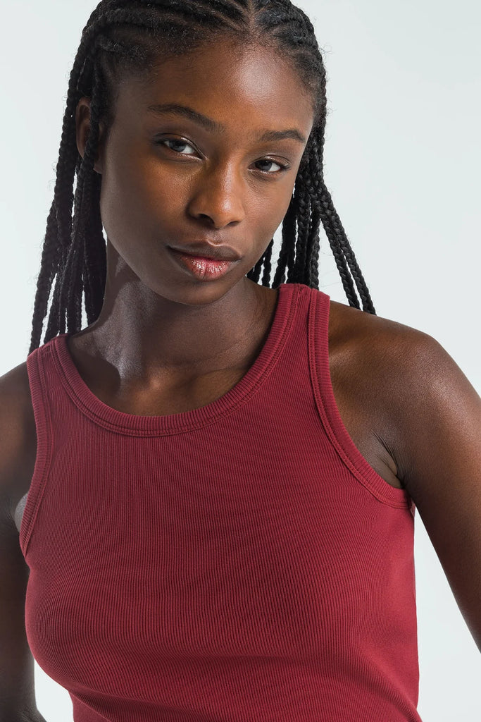 A racerback singlet with a round neckline in soft, stretchy rib-knit fabric. The Kerry is a wardrobe staple and ideal for layering or to wear on its own.