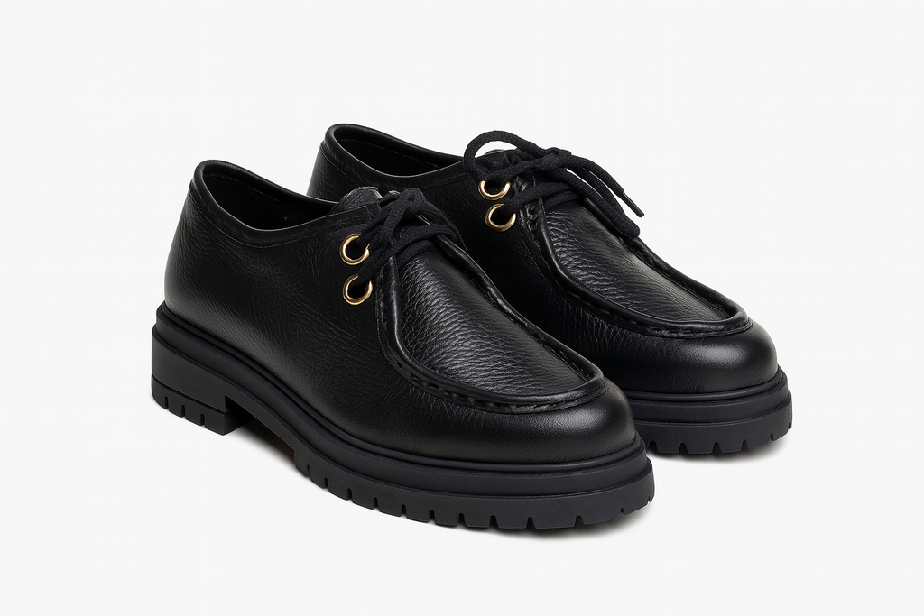 Chunky black loafers with shoelaces. Made in Spain with high quality materials.