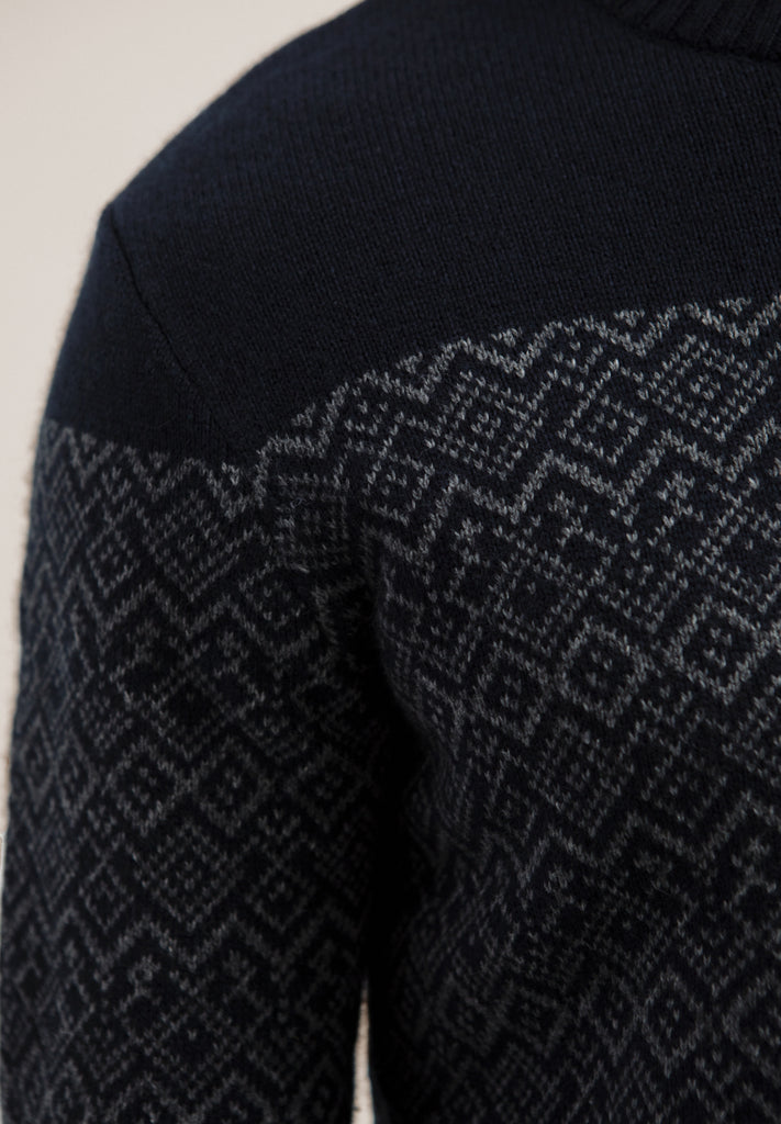 This jumper has beautiful pattern on navy blue.
