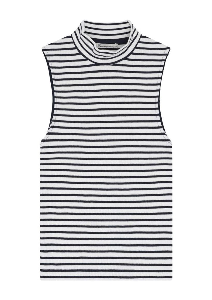 The Rib mock neck top is the perfect choice for your summer outfit. It is made in a soft blend of lightweight organic cotton and a little bit of elastane for your comfort. Designed in a slim fit without sleeves and completed with a high neck.