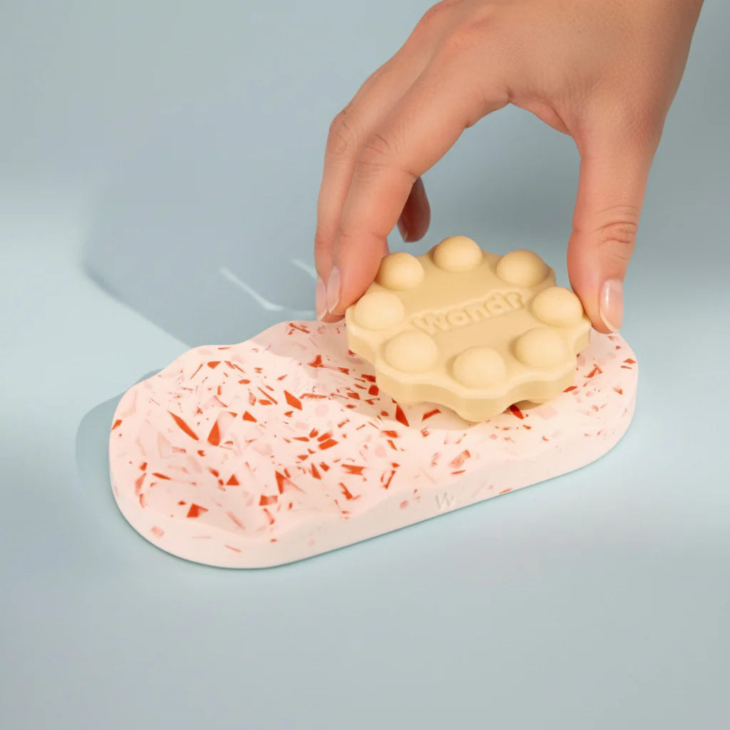 Thanks to the unique shape of our WONDR-bars, you enjoy skincare and massage in one. For a magical me-time moment!