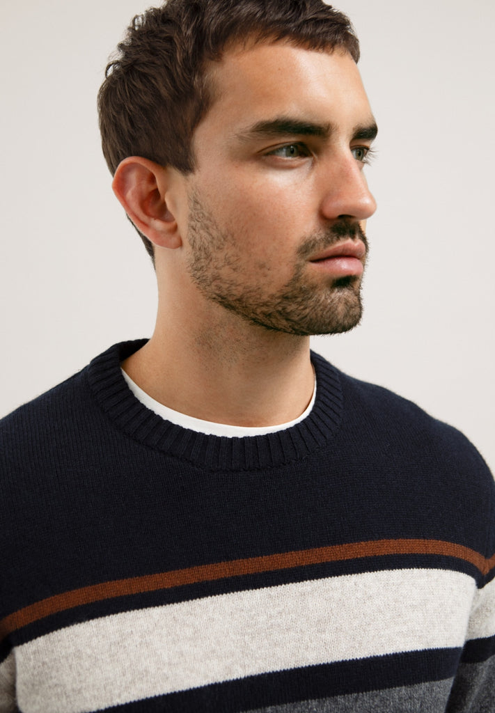 ARMEDANGELS Saato jumper depth navy dark caramel