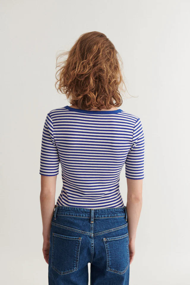 BASIC APPAREL Ludmilla SS stripe granddad BA146-33 sodalite blue whisper white 867 women
