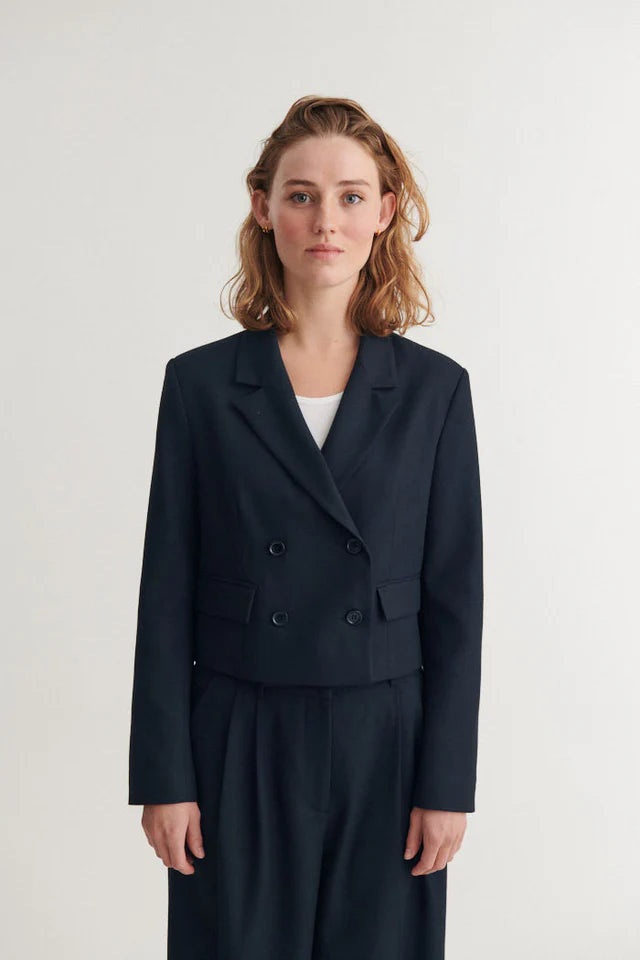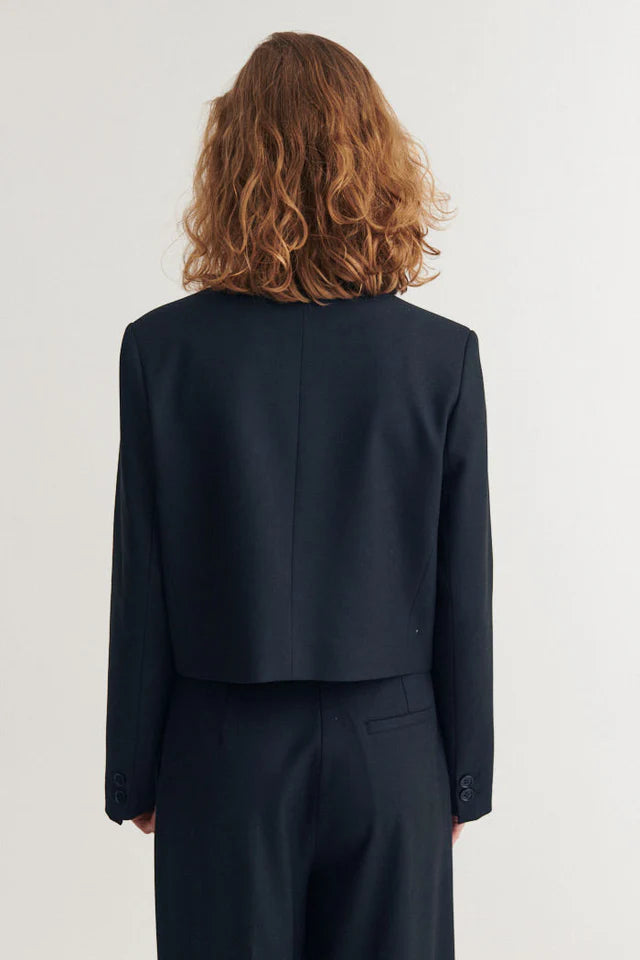 Radi Short Jacket is a short jacket with a relaxed fit, reverse lapel collar, and long sleeves, creating an effortless yet polished look. The double-breasted front adds structure and makes it easy to pull an outfit together without feeling too formal.