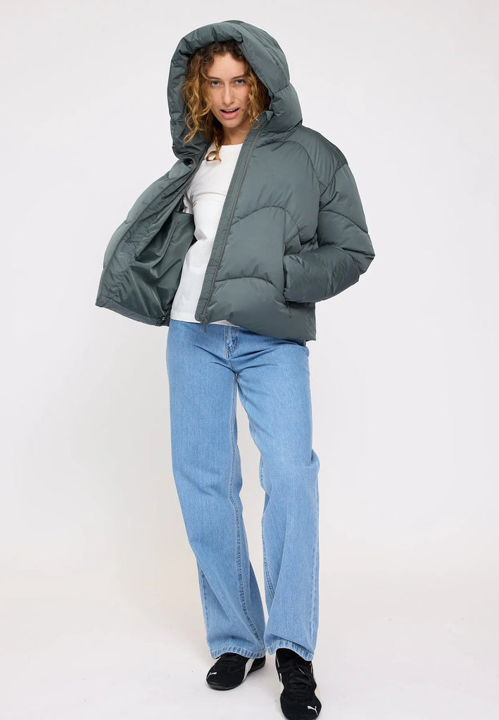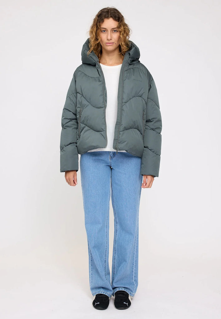 Waves quilt short puffer jacket – warm, lightweight and stylish. With recycled polyester filling, oversized hood, sporty silhouette and water-repellent shell. GRS-certified for sustainable comfort all winter long.