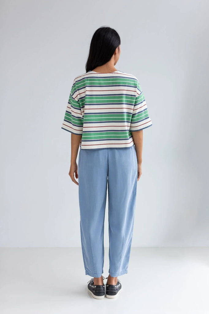 TWOTHIRDS Fingal cropped t-shirt green rugby stripes women