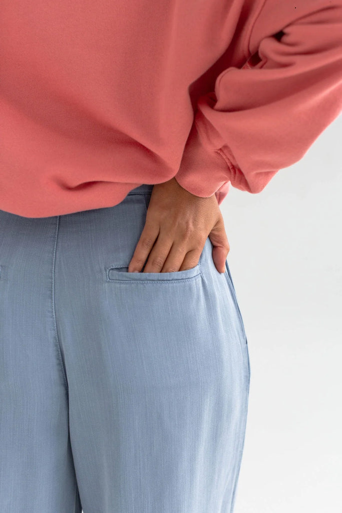 The Haruku trousers in a soft Tencel™ Lyocell fabric. Loose tapered fit and ankle length makes these trousers contemporary and easy to wear.