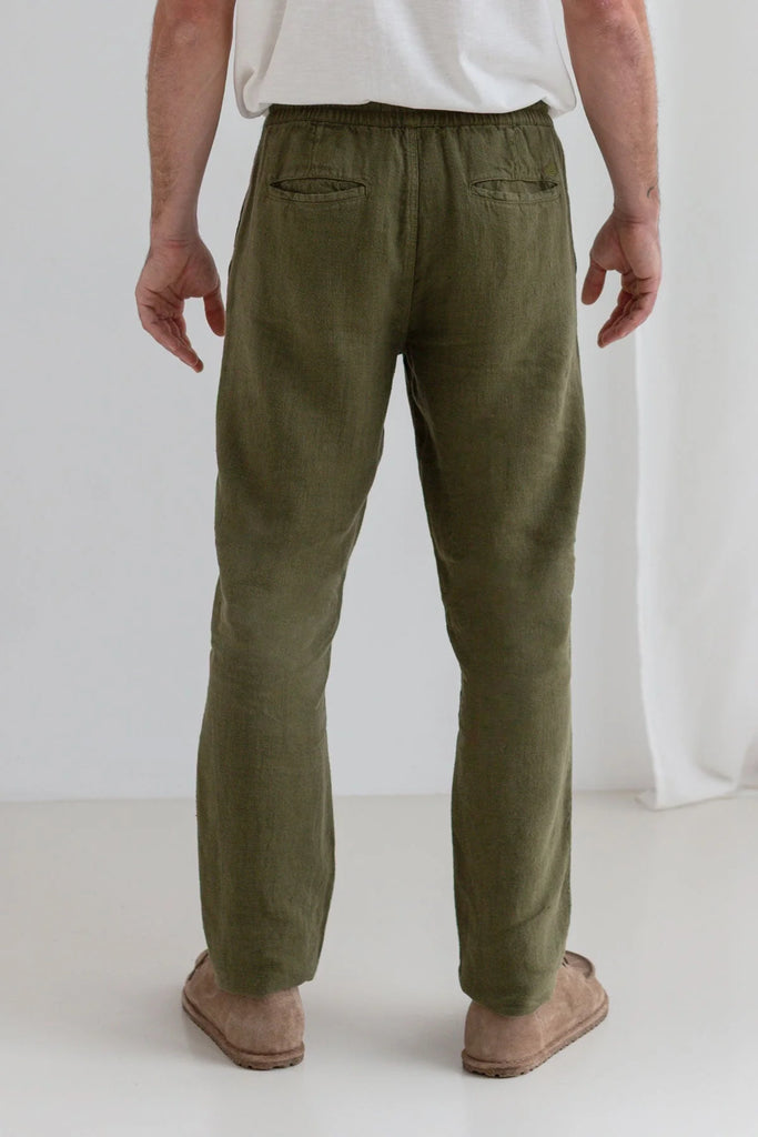 These relaxed trousers are made of 100% linen.