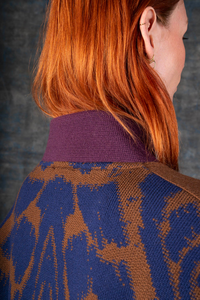 The NOCTUA bomber is knit from 100% extra fine merino wool, making it soft and comfortably warm. The colour blocks give it a playful and modern feel, while the back features a subtle motif inspired by moth wings.